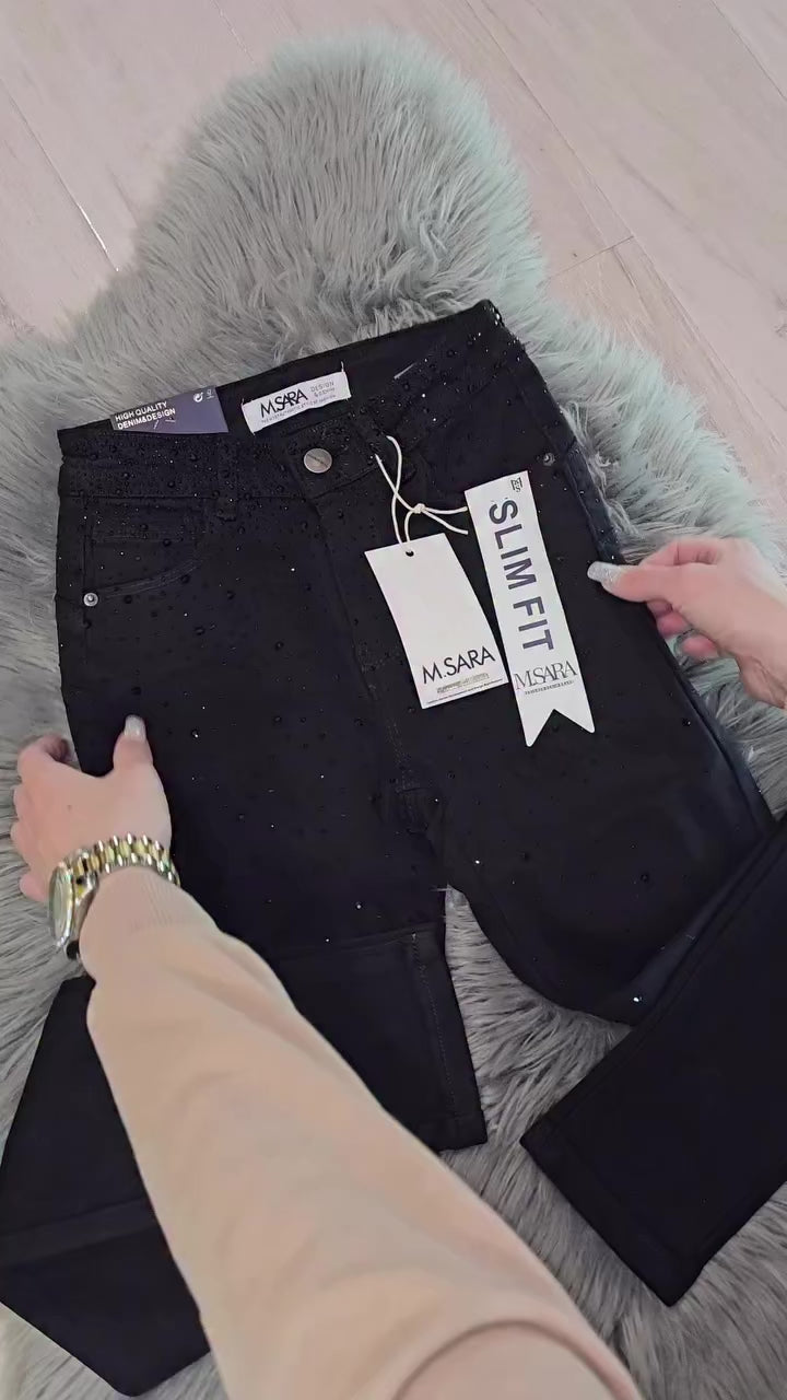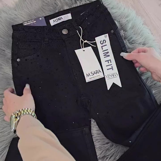 Blugi skinny elastici cu pietre – alegerea ideală pentru un look feminin și ușor glam. Confecționați dintr-un material elastic și confortabil, acești blugi se mulează perfect pe corp, evidențiind formele într-un mod elegant. Aplicațiile cu pietre adaugă un plus de strălucire și rafinament, transformând o piesă basic într-una statement.